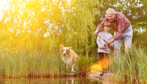 A grandparent setting aside one day a week to go fishing with their grandchild, making it a special time to share stories and teach skills.